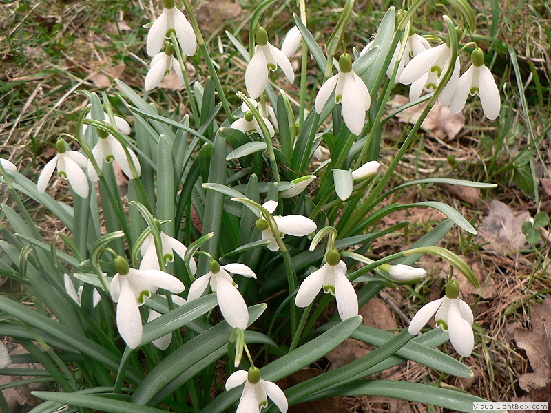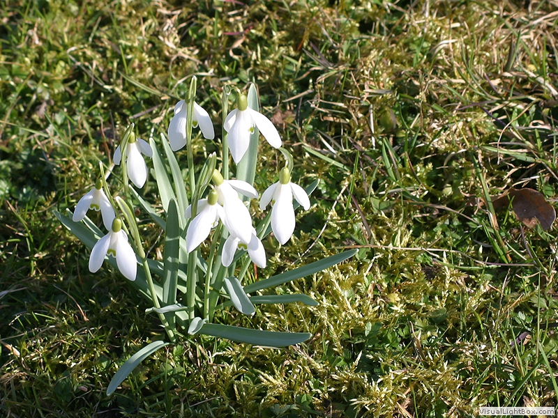 auch Gewöhnliches Schneeglöckchen, oft gesellige Frühjahrspflanze, frosthart, Blüten einzeln stehend, nickend,