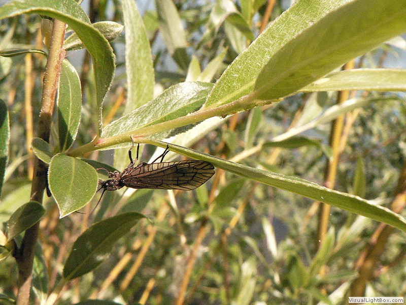 Familie Schlammfliegen (Sialidae) Schlammfliegen gehören zu einer alten Insektenordnung, die schon in Funden aus dem Perm vor etwa 270 Millionen Jahren nachgewiesen werden konnte. Sie sind amphibiotische Insekten, d.h., die Larven leben im Wasser, die erwachsenen Insekten in der Ufervegetation der Gewässer, in denen sie als Larven gelebt haben. Die Flugzeit liegt zwischen Mai und Juli. Zu finden sind sie immer in Wassernähe, meist sitzen sie träge an Uferrändern. Trotz ausgeprägter Mundwerkzeuge nehmen erwachsene Tiere kaum Nahrung auf, ihre kurze Lebenszeit dient lediglich Paarung und Eiablage. Die Larven ernähren sich räuberisch von anderen Insektenlarven, Würmern und kleinen Muscheln. Im Unterschied zu "normalen" Fliegen besitzen Schlammfliegen vier Flügel. Gewöhnliche Wasserflorfliege (Sialis lutaria) |