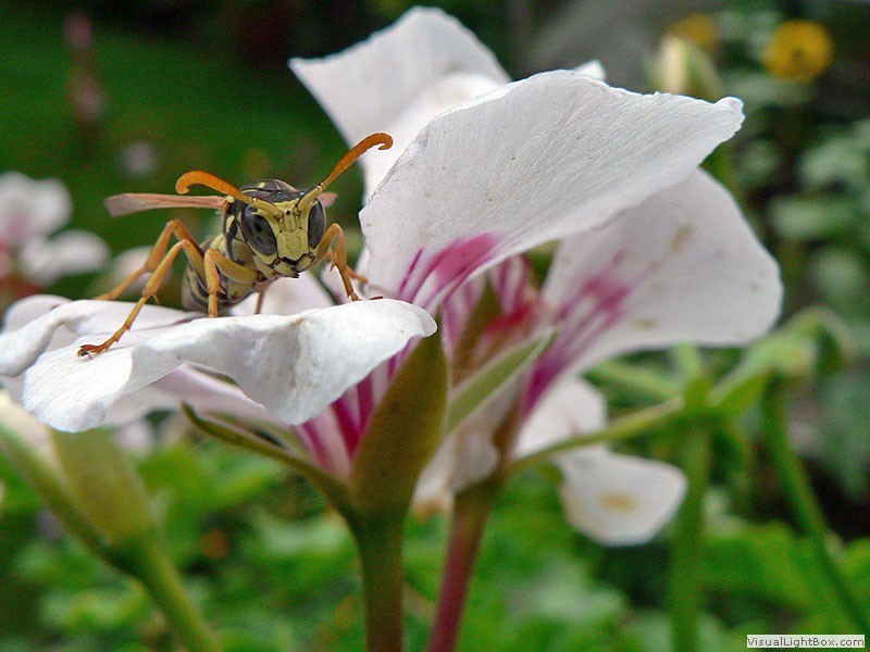 angezogen, sie legt ihre Nester frei hängend an geschützten Orten an, die Zeichnung auf dem Kopfschild und am Hinterleib ist