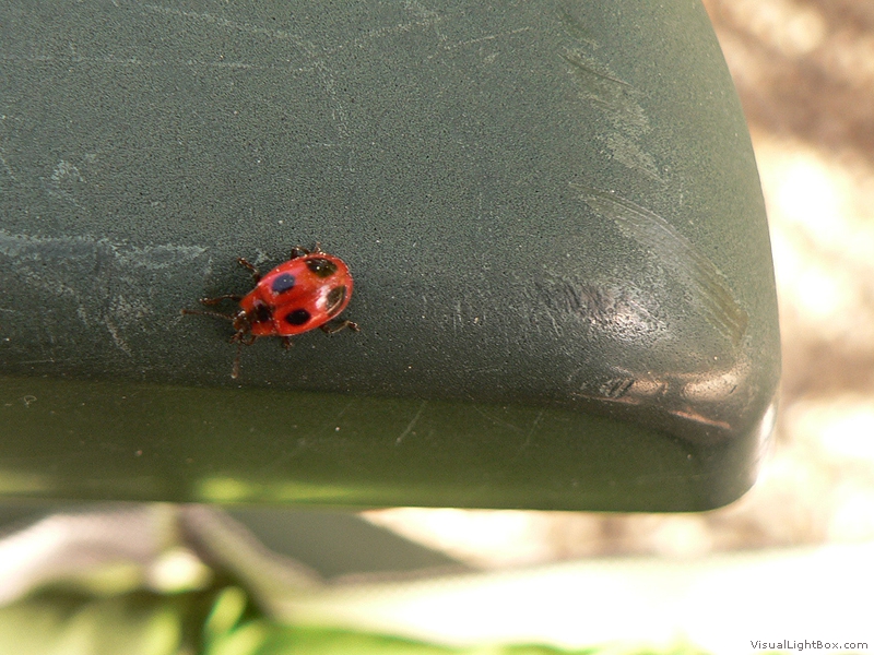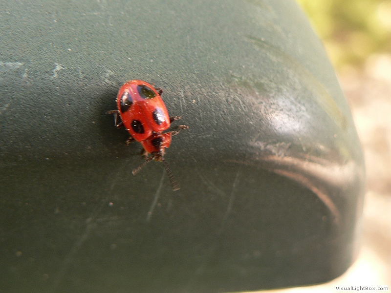 Gelbtönen über Rot bis hin zu Schwarz variieren. Die Anzahl der Punkte auf dem Rücken des Marienkäfers sind genetisch