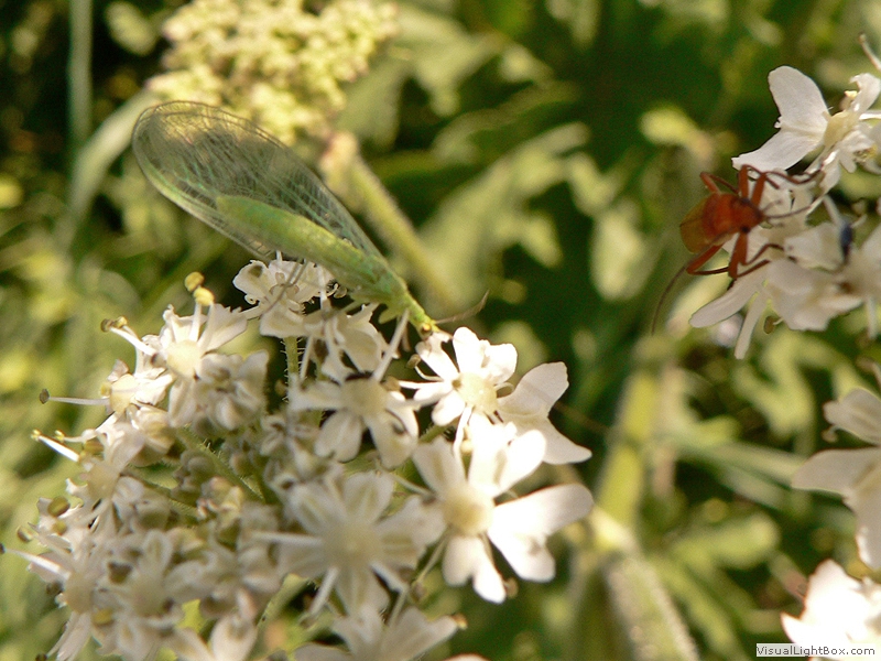 Gewöhnliche Florfliege werden auch Blattlauslöwen genannt, weil sie mit ihren zangenartigen Mundwerkzeugen Blattläuse und