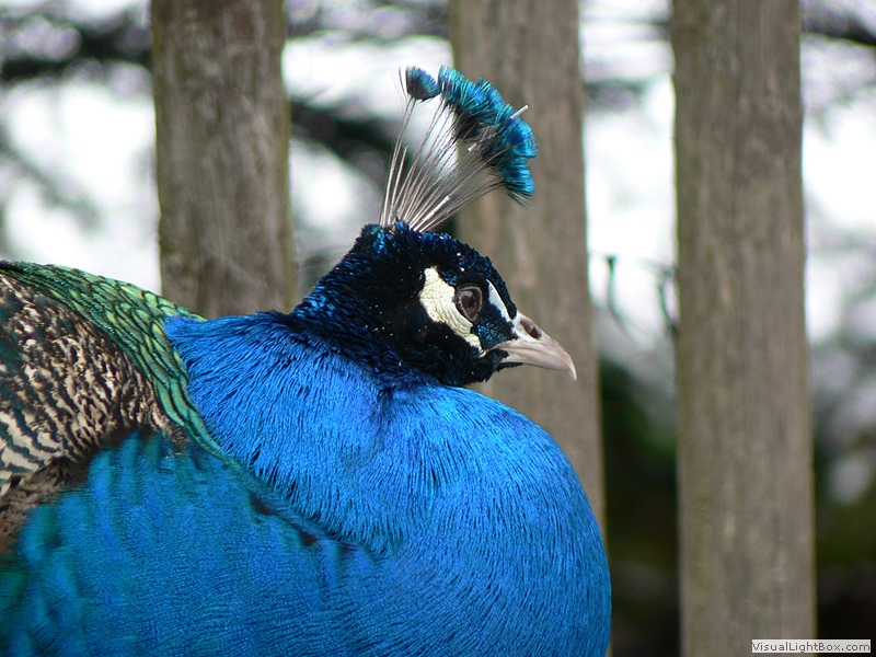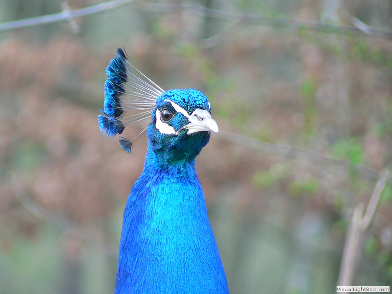 eine Federkrone auf dem Scheitel, Pfauen haben einen ausgeprägten Geruchs- und Gehörsinn, sie sind sehr wachsam und warnen