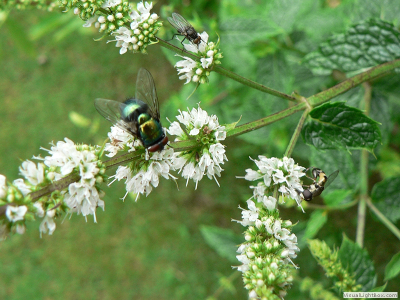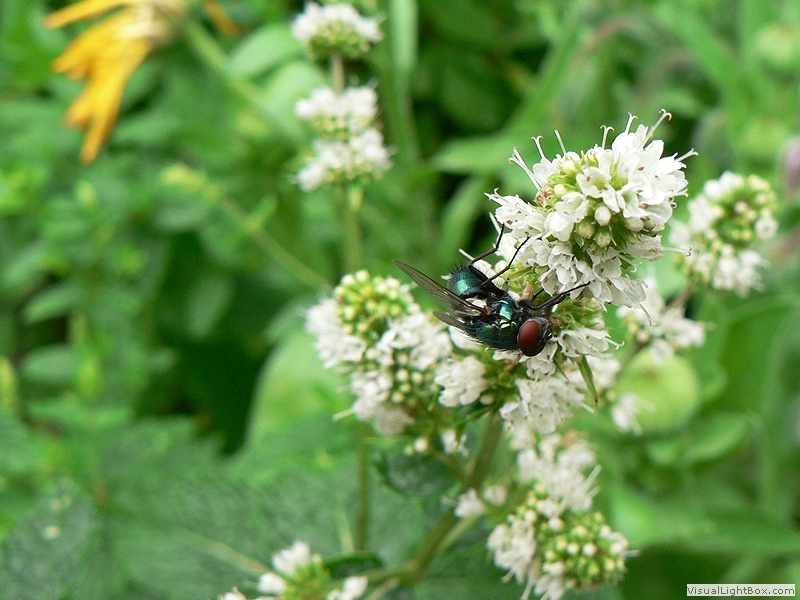 Fühler und Beine schwarz, Flügel transparent, ernähren sich von Aas, Pollen undNektar.
