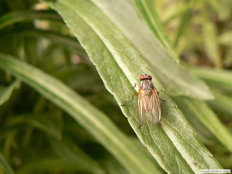 häufigste Art der Fleischfliegen, Krankheitsüberträger, die Larven leben parasitisch in Regenwürmern, auf dem dunkelgrauen