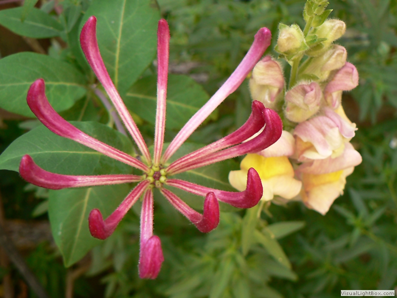 auch Gartengeißblatt, Echtes Geißblatt oder Jelängerjelieber genannt, verholzende Kletterpflanze, Blütezeit Mai bis