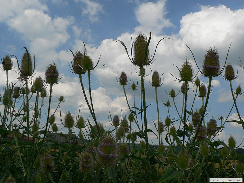 Trichtern der Stängelblätter sammelt sich Regenwasser, das Vögel gern trinken, die ganze Pflanze ist stachelig.