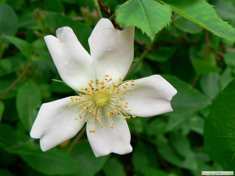 mit der Hundsrose nah verwandt, unterscheidet sich durch größere Blüten und weniger Stacheln, Unterseiten der Laubblätter