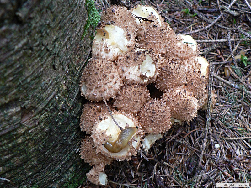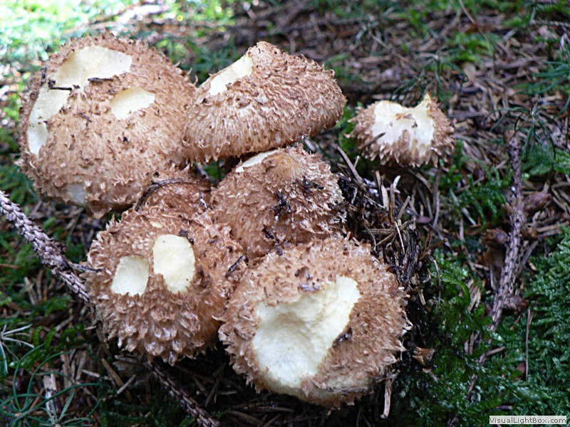 Merkmal von Stäublingen ist das durchgängige Fleisch ohne Anzeichen oder Ansätze von Lamellen. Tussenhausen, 3. Dezember 2016 (altes Exemplar), 1. September 2022 (2), Markt Wald, 4. November 2023 (2); Vorkommen oft in Gruppen von Frühsommer bis Spätherbst im Laub- und Nadelwald. Das Kopfteil ist rund und geht direkt in den Stiel über, die Oberfläche ist mit Warzen und Stacheln besetzt, die sich leicht abwischen lassen; junge Exemplare sind fest und weiß, mit zunehmender Reife trocknet die Fruchtmasse im Inneren aus und zerfällt zu bräunlichem Sporenpulver, die Pilze verfärben sich gelblich bis graubraun und reißen am Scheitel, wo die reifen Sporen entweichen können. Aufgrund blutstillender Wirkung wird der Flaschenstäubling auch als Vital oder Heilpilz betrachtet. Igel-Stäubling (Lycoperdon echinatum) |