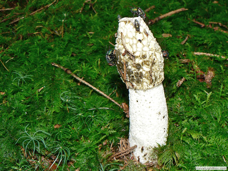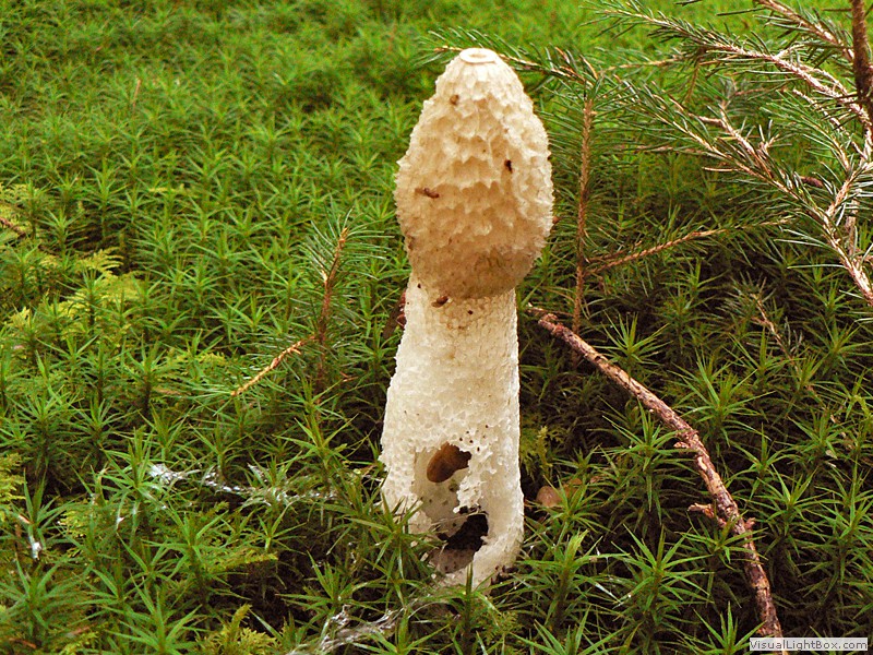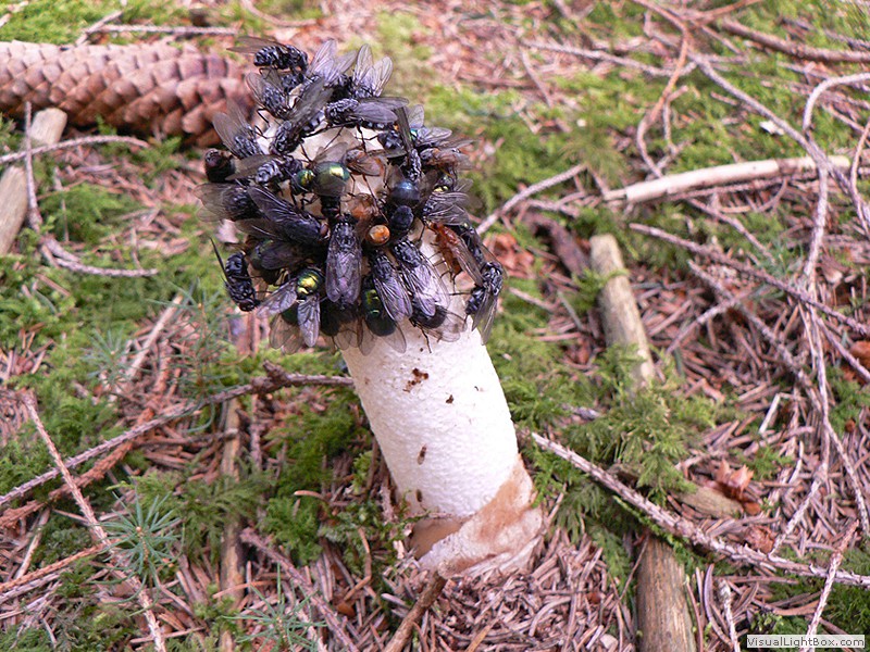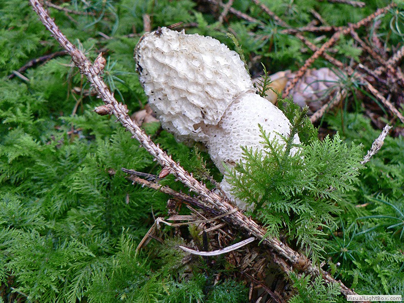 Familie Rutenpilze (Phallaceae) Stinkmorchel (Phallus impudicus) Tussenhausen, 16. August 2016, Markt Wald, 30. August 2016, Tussenhausen, 8. Oktober 2016 (2), 27. August 2017, 24. Oktober 2020, 18. September 2021, 15. Oktober 2022 (Hexenei noch zu sehen); Vorkommen Sommer bis Spätherbst, häufig im Misch- und Nadelwald; nicht giftig. Der ungewöhnliche Pilz entsteht aus einem unterirdisch lebenden Hexenei, welches essbar ist. Nachdem der Knolle