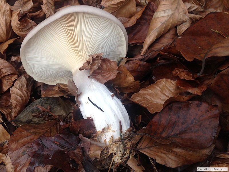 Auch Nebelgrauer Trichterling, Nebelgrauer Röteltrichterling oder Graukappe genannt, Hut dickfleischig, gewölbt, bei