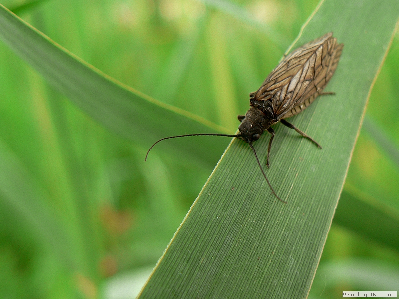 | Familie Schlammfliegen (Sialidae) Schlammfliegen gehören zu einer alten Insektenordnung, die schon in Funden aus dem Perm vor etwa 270 Millionen Jahren nachgewiesen werden konnte. Sie sind amphibiotische Insekten, d.h., die Larven leben im Wasser, die erwachsenen Insekten in der Ufervegetation der Gewässer, in denen sie als Larven gelebt haben. Die Flugzeit liegt zwischen Mai und Juli. Zu finden sind sie immer in Wassernähe, meist sitzen sie träge an Uferrändern. Trotz ausgeprägter Mundwerkzeuge nehmen erwachsene Tiere kaum Nahrung auf, ihre kurze Lebenszeit dient lediglich Paarung und Eiablage. Die Larven ernähren sich räuberisch von anderen Insektenlarven, Würmern und kleinen Muscheln. Im Unterschied zu "normalen" Fliegen besitzen Schlammfliegen vier Flügel. Gewöhnliche Wasserflorfliege (Sialis lutaria) |