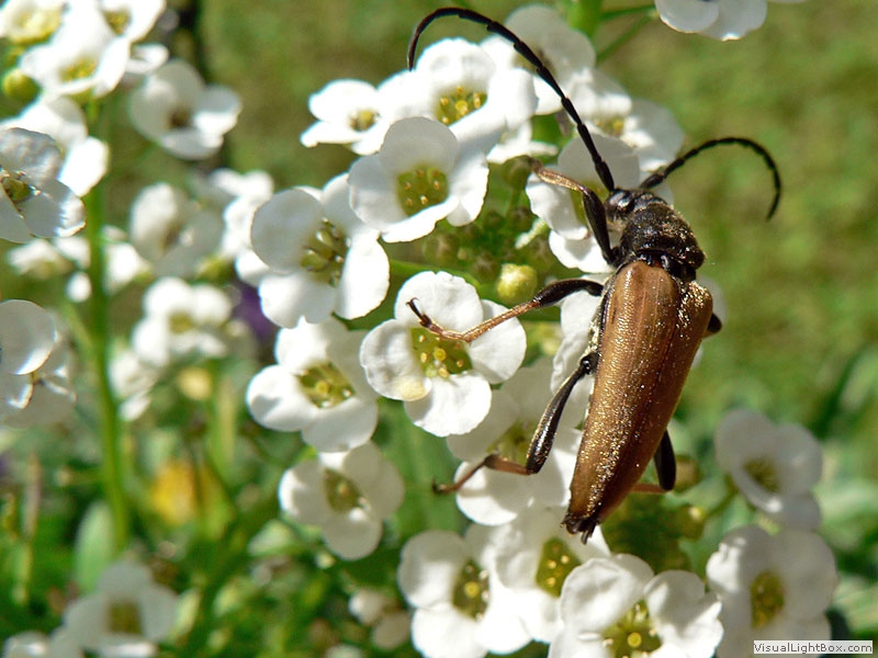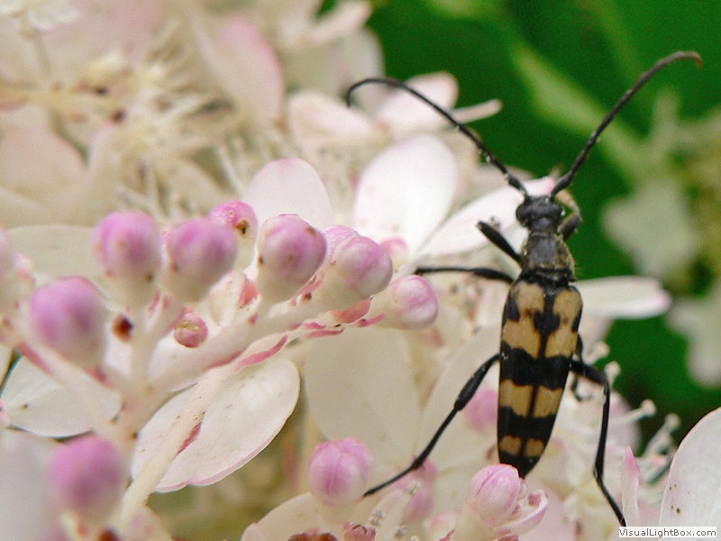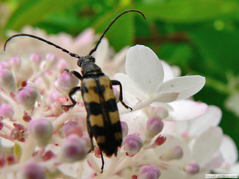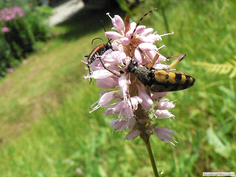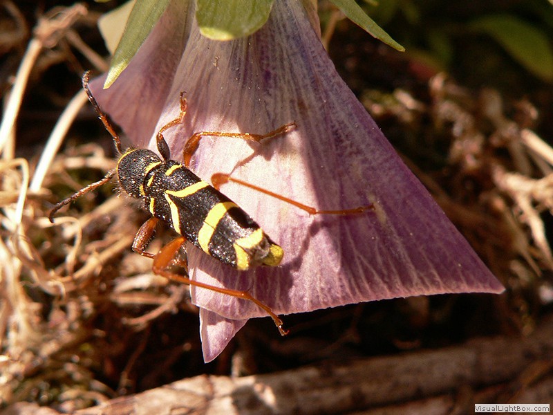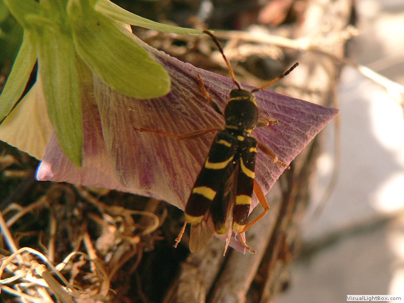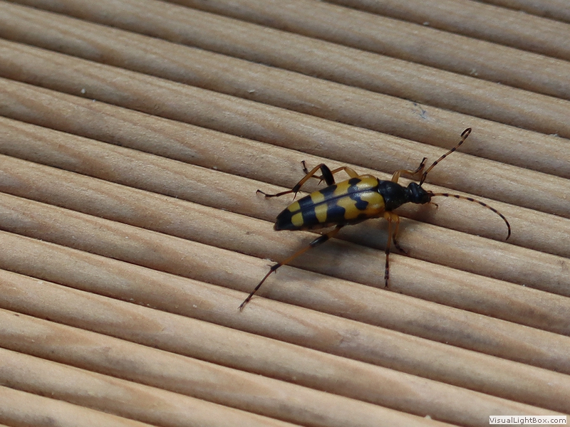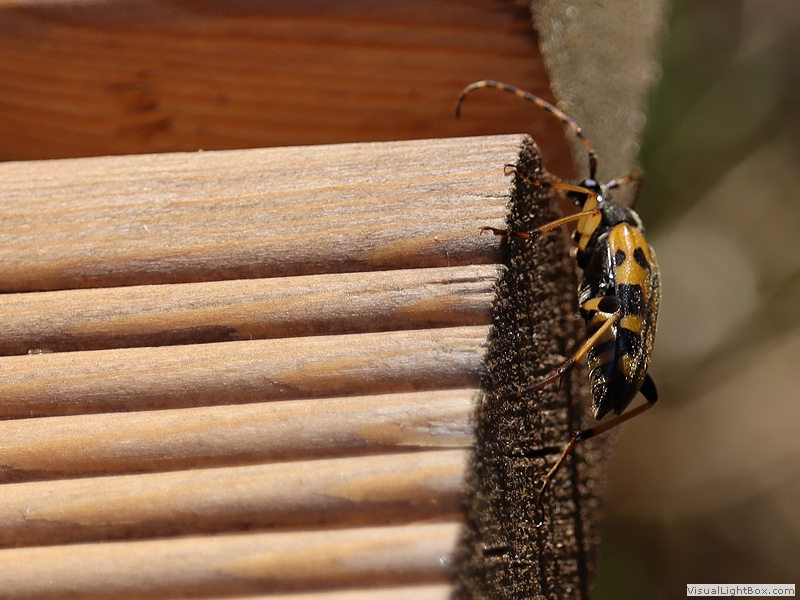 Die wespenähnliche Zeichnung der harmlosen Bockkäfer soll vermutlich Wespen imitieren und abschreckende Wirkung