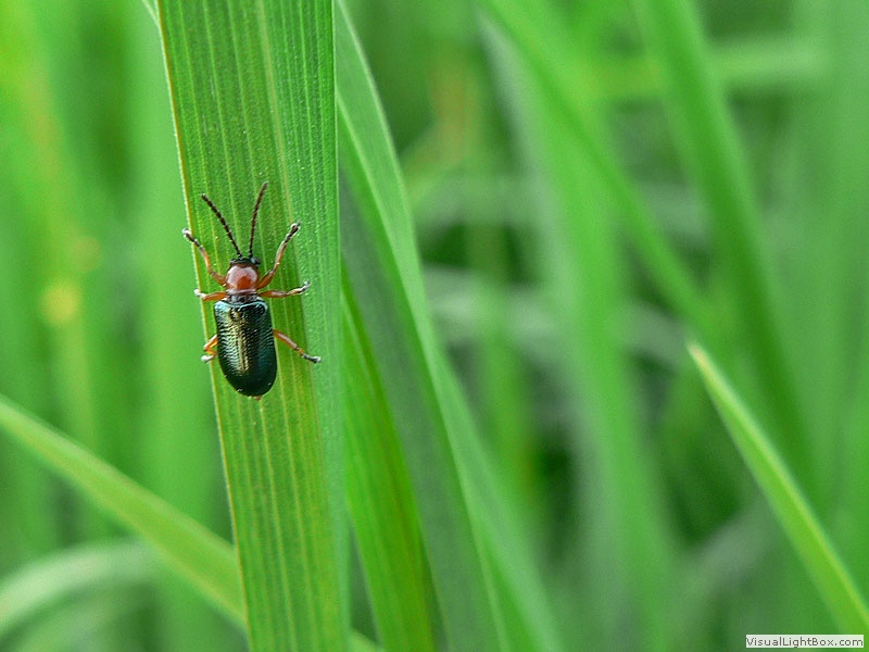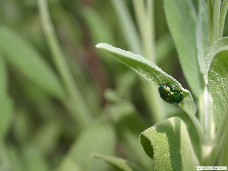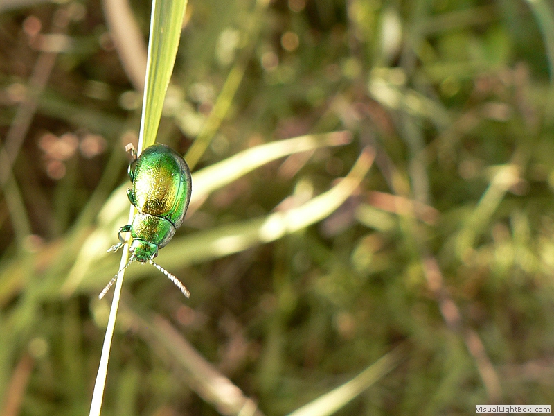 Körper oval, max. 2 mm lang, Farbe variiert metallisch grün, blau, violett ode schwarz, Beine und Fühler braun,