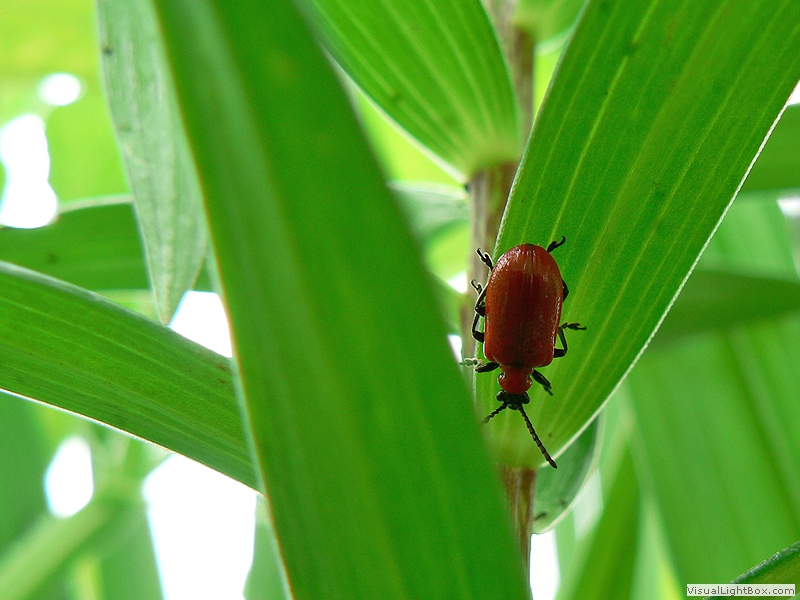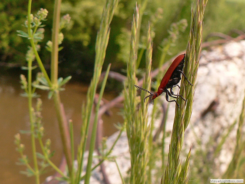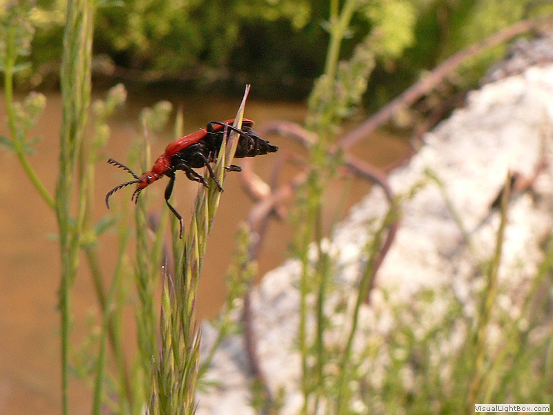 Wassernähe zu finden, Größe 15 bis 21 mm, Körper, Beine und Halsschild sind orangerot, Kopf und Fühler schwarz, die