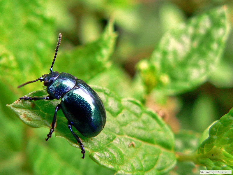 von Mai bis September auf Minzearten zu finden, Körper gerundet, Farbspektrum variabel metallisch grün bis blau
