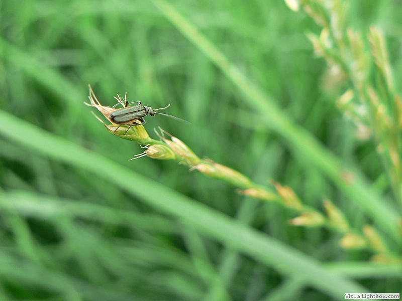 zu finden Mai bis Juli auf Wiesen, Körper schmal, langgestreckt, graugrün, matt, Flügeldecken punktiert, nach hinten sich