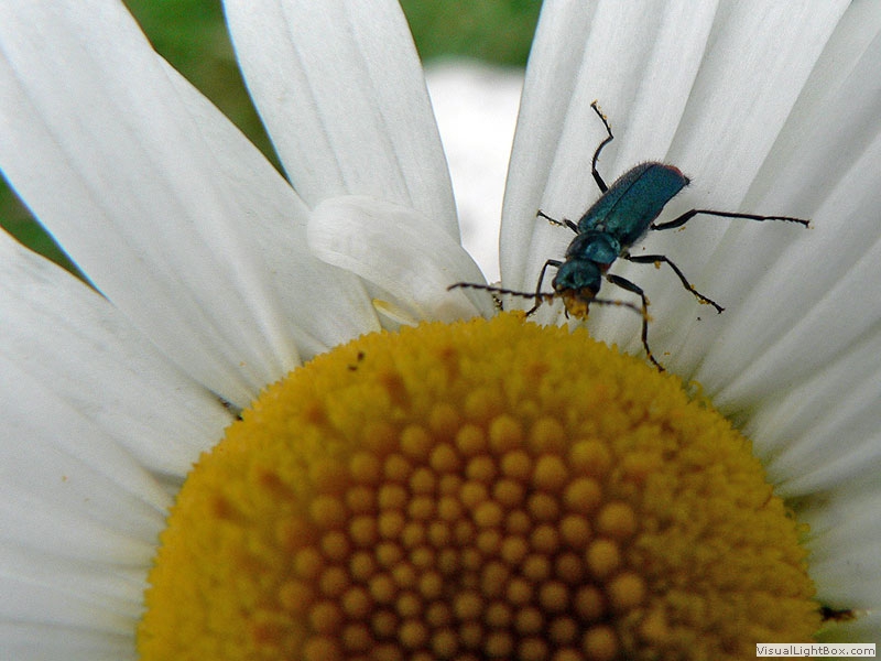 zu finden Mai bis Juli auf Kräutern, an Blüten, ernährt sich überwiegend von Pollen, metallisch-grün glänzender