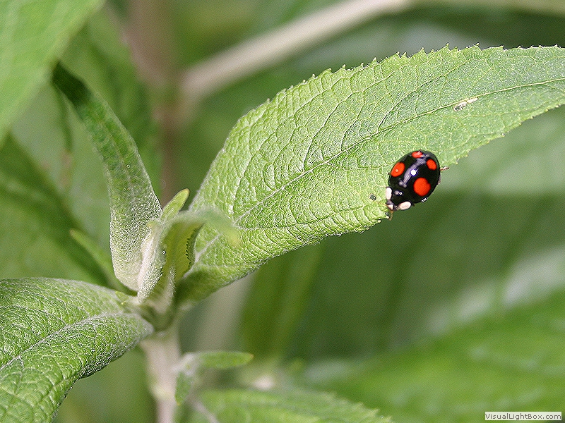 auch Vierzehnpunkt-Marienkäfer, zu finden auf Wiesen, Feldern, auf Sträuchern, Bäumen, Körperlänge bis 4,5 mm, Halsschild und