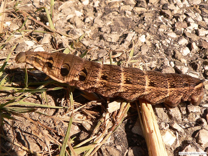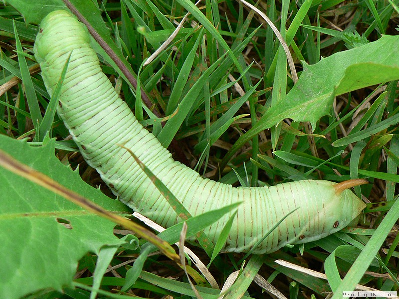 die Raupen gehören mit etwa zwölf Zentimetern Länge zu den größten Europas, ihre Grundfärbung ist variabel von grün, gelb,