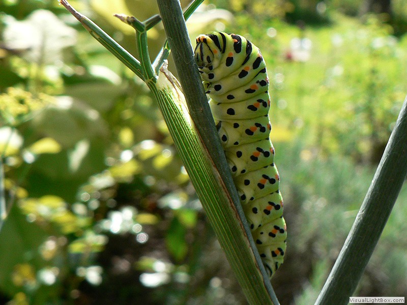 Schwalbenschwanz (Papilio machaon), Jettingen-Scheppach, 27.08.2015, Raupe (2), Tussenhausen, 08.08.2016 (2),