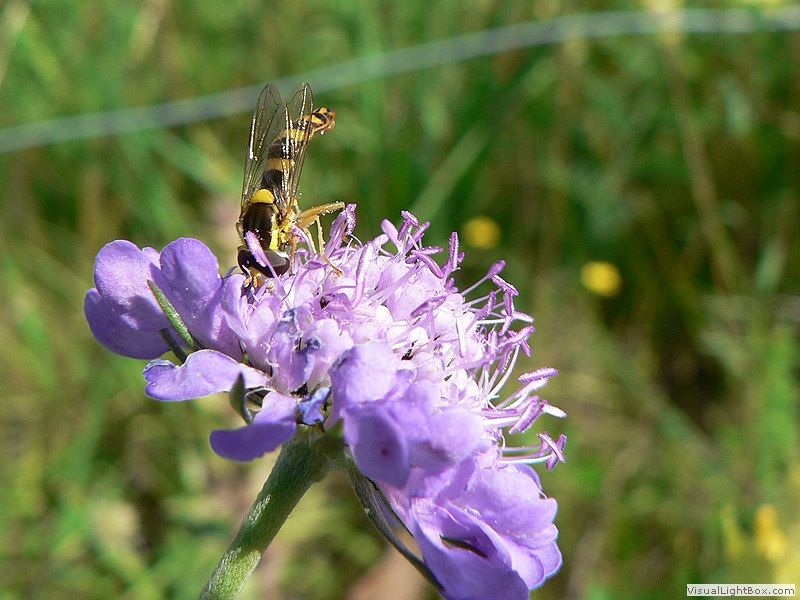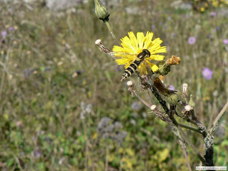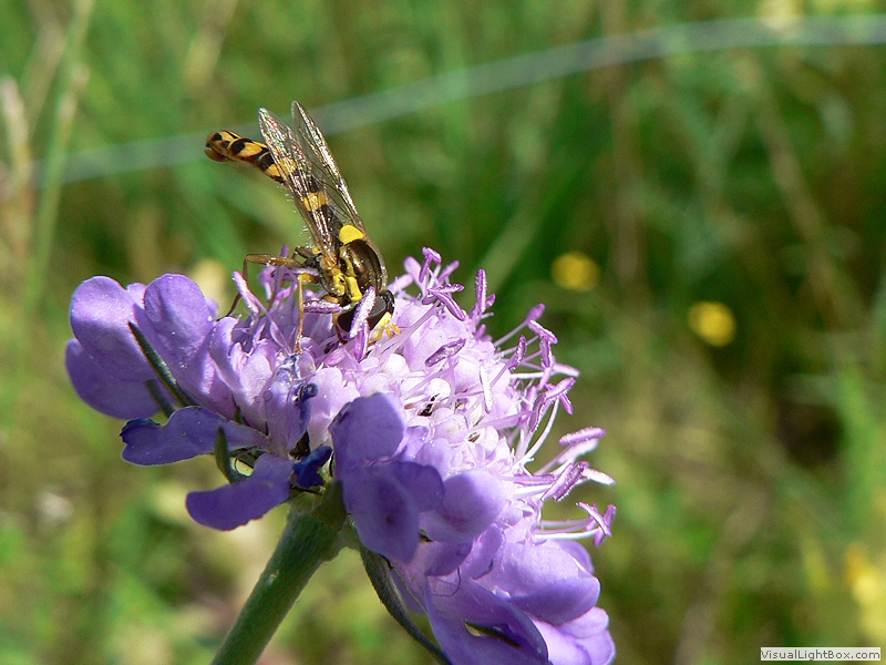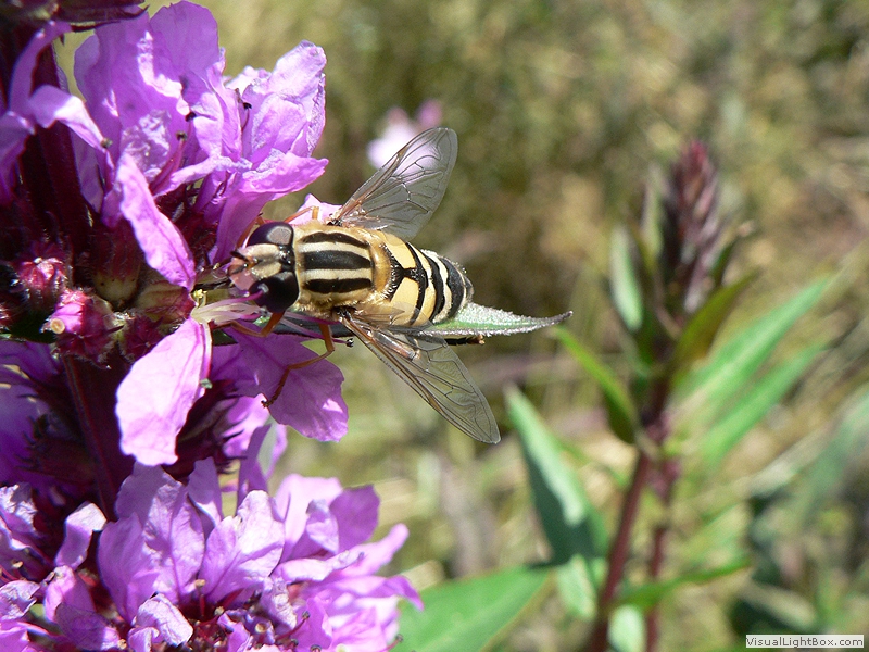 Schwebfliegen, Flugzeit Mai bis Oktober, bevorzugt feuchte Gebiete mit blumenreichen Wiesen, Rückenschild markant