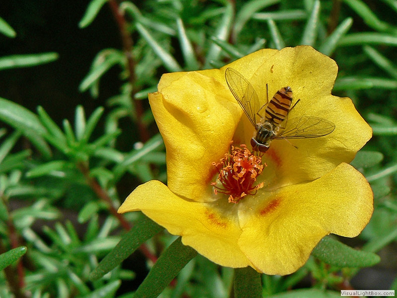 gelb, erwachsene Tiere saugen Nektar und fressen Pollen vor allem an Doldengewächsen und Korbblütlern, außerordentlich